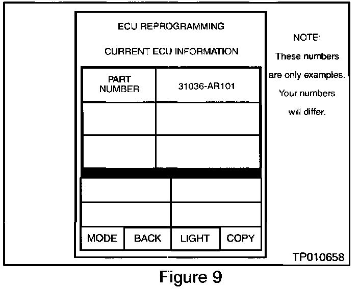 37. Press "CHECK TCM P/N" to confirm (i.e., take note of) the current TCM part number on the vehicle to be reprogrammed (see Figure 9).