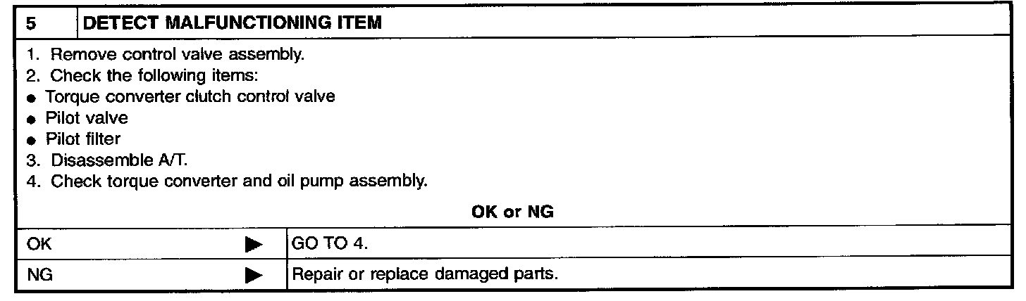 SYMPTOM: A/T does not hold lock-up condition for more than 30 seconds.
