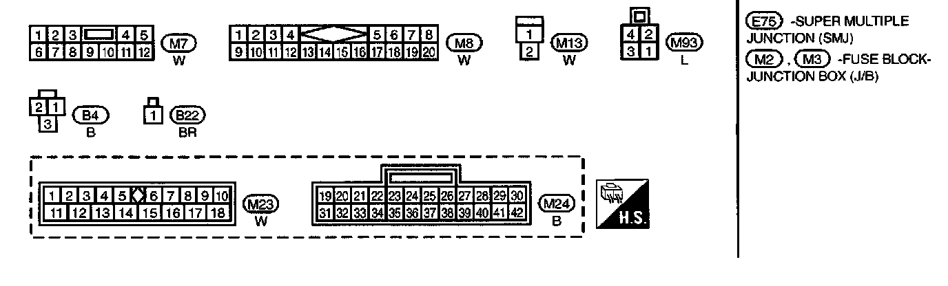 E75, M2, M3 Super Multiple Junction (SMJ) and Fuse Block - Junction Box (J/B) Terminal Arrangement