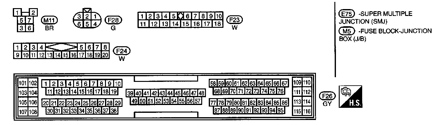 M1,M2,M3,M4,M5,B1,E71,E72,E73 Connector Views: