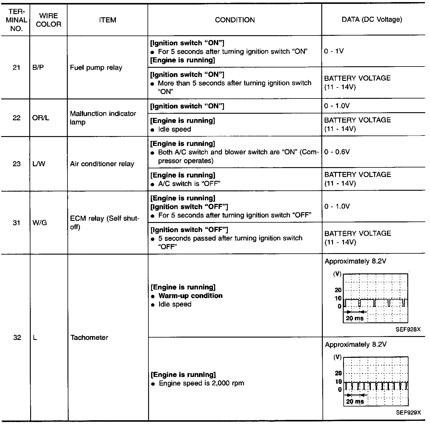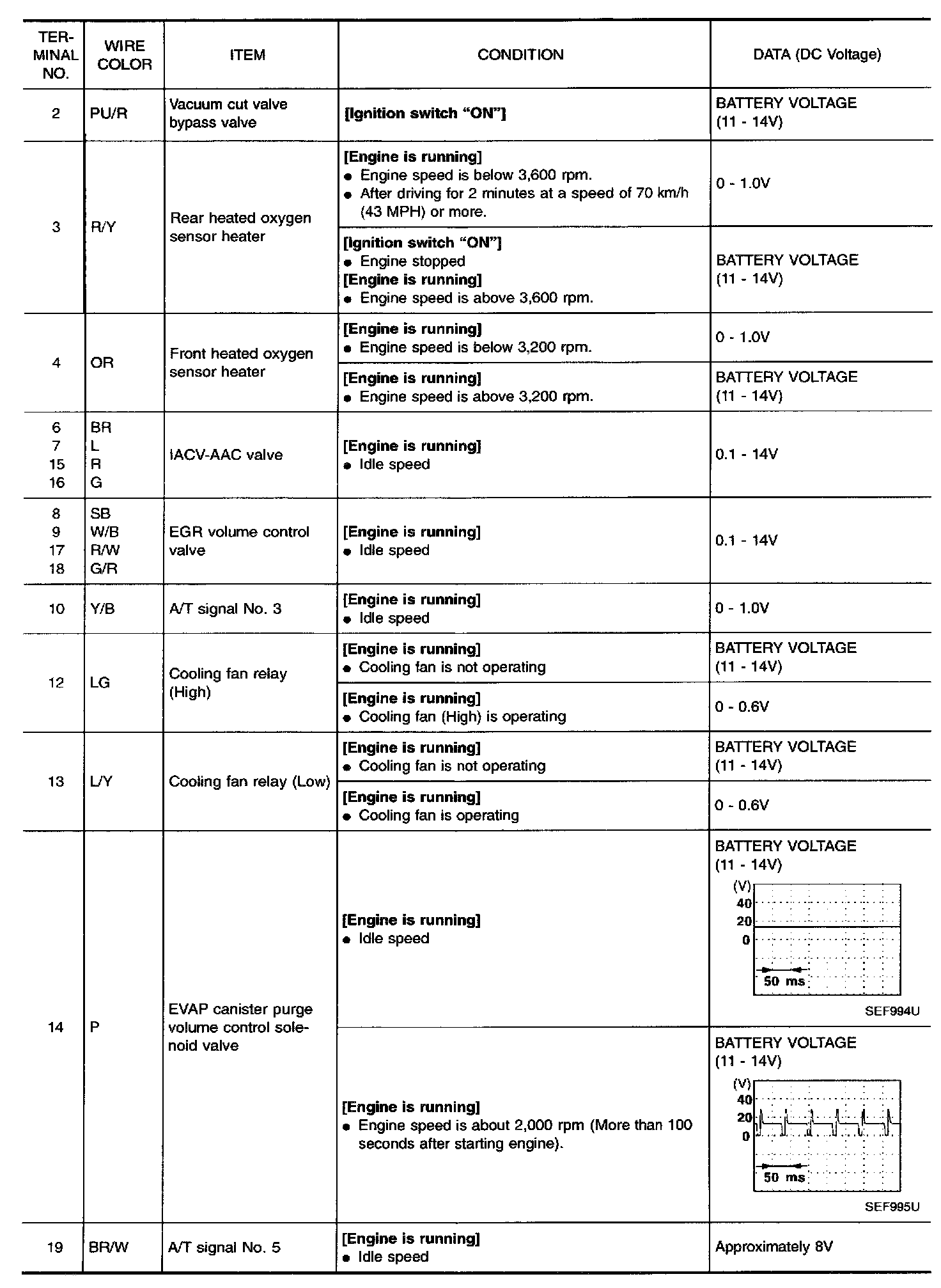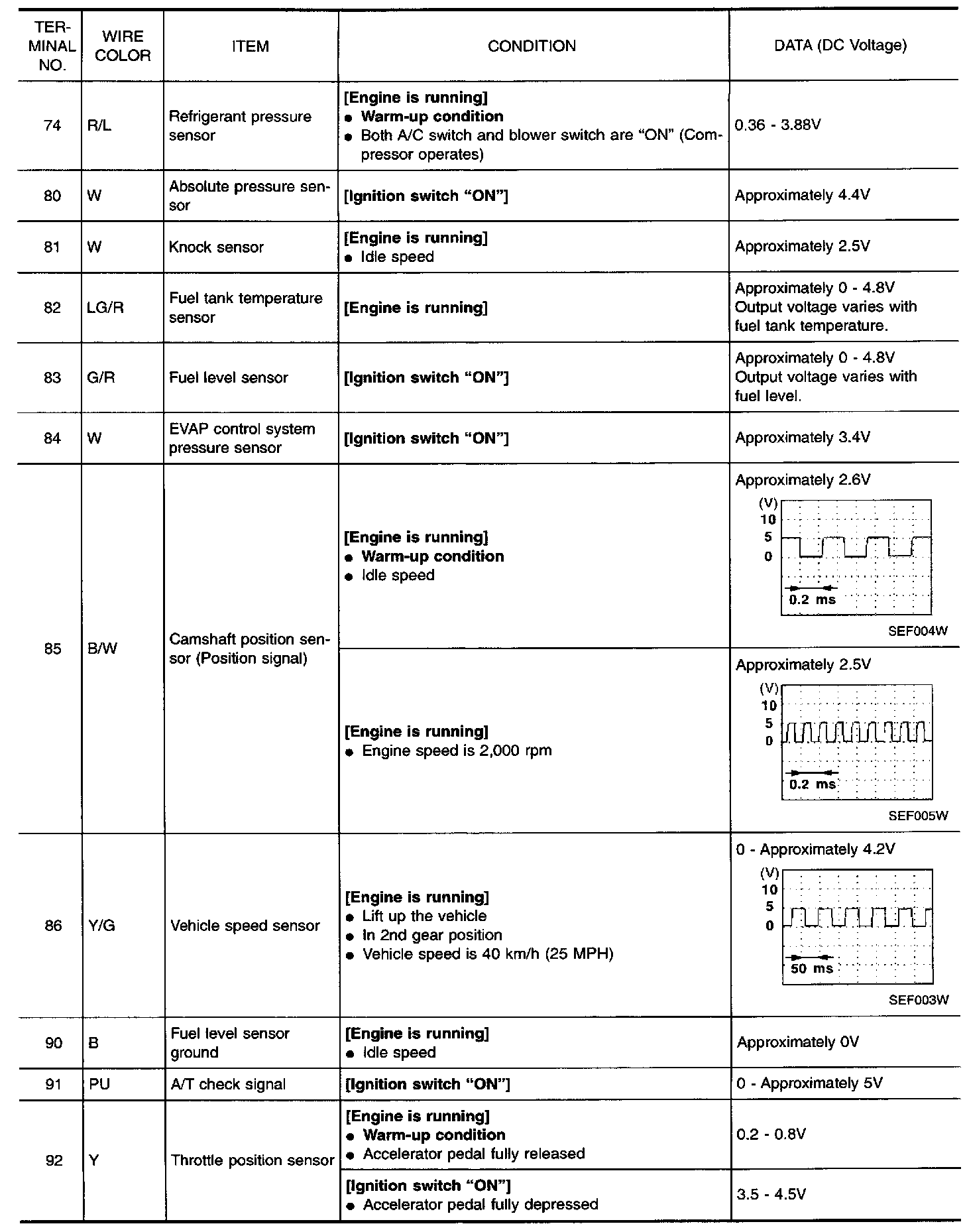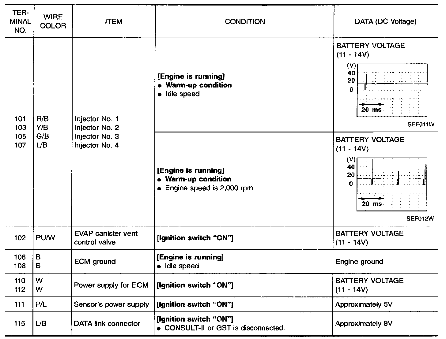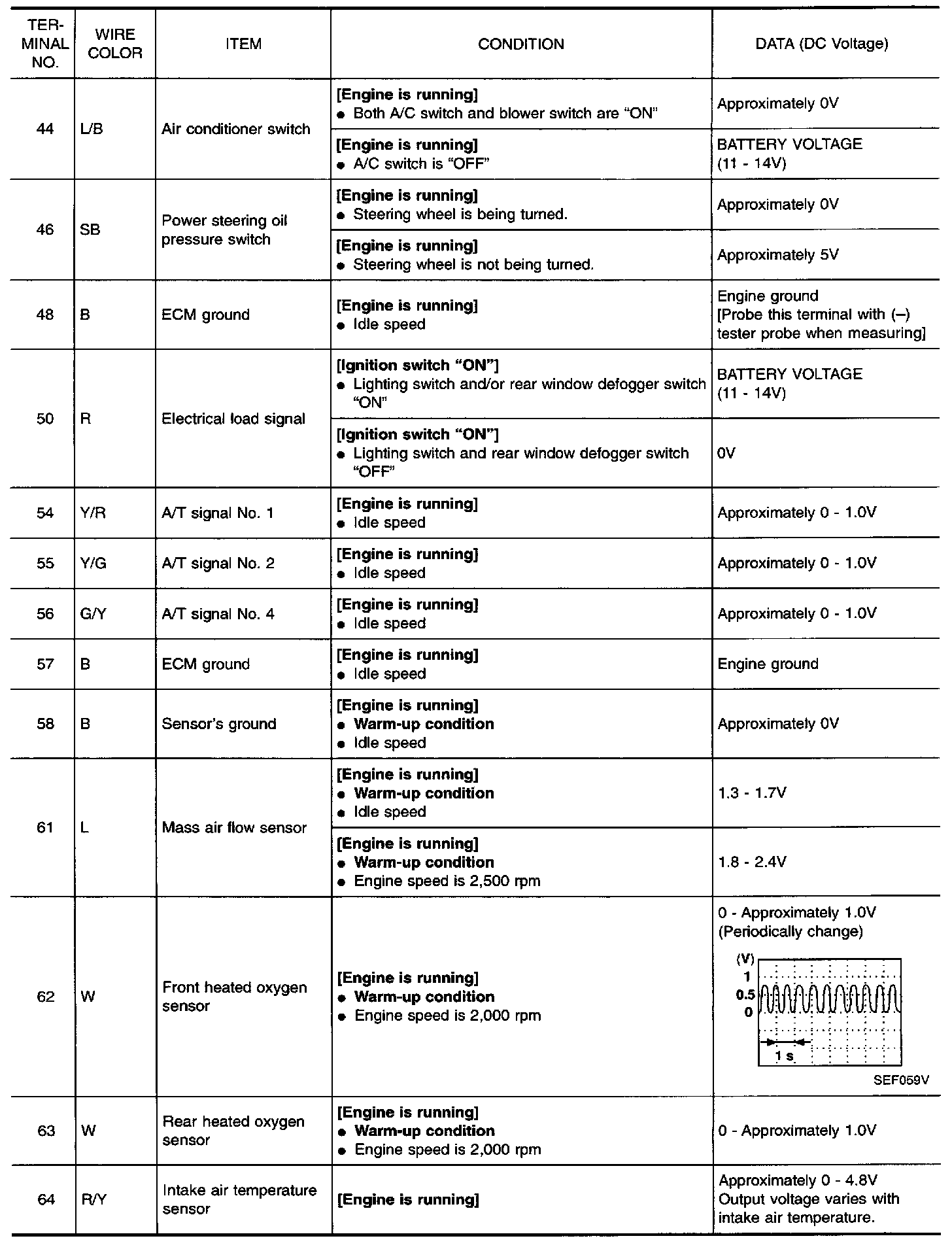 Specification data are reference values and are measured between each terminal and 48 (ECM ground).