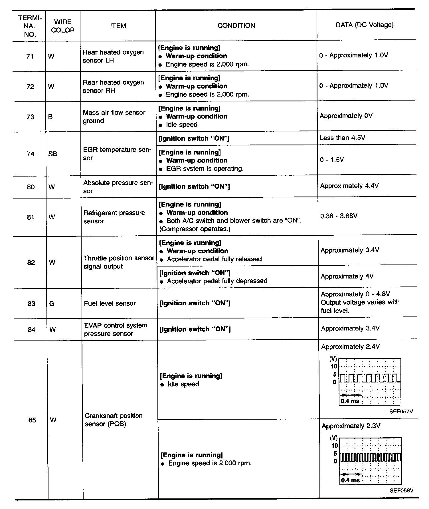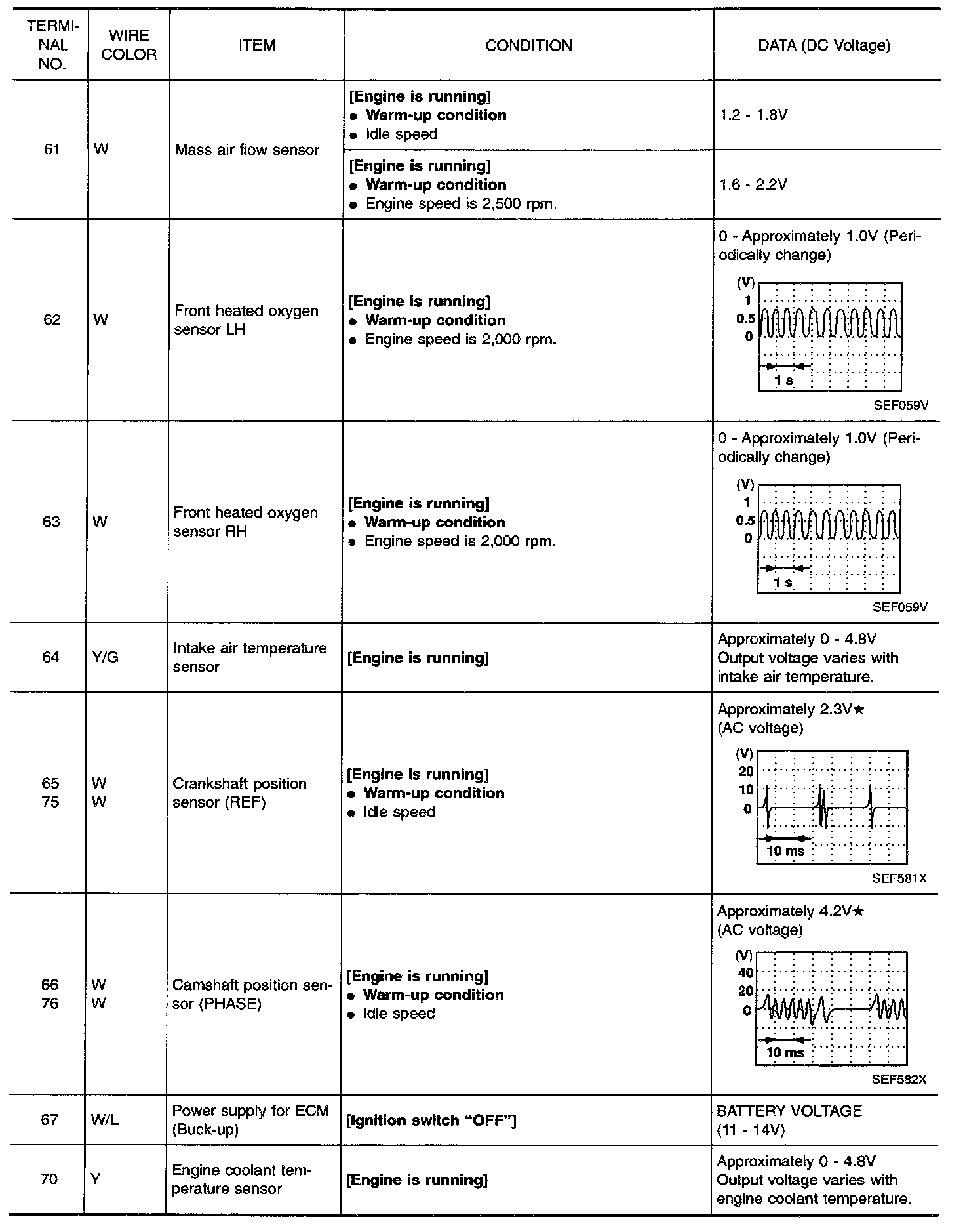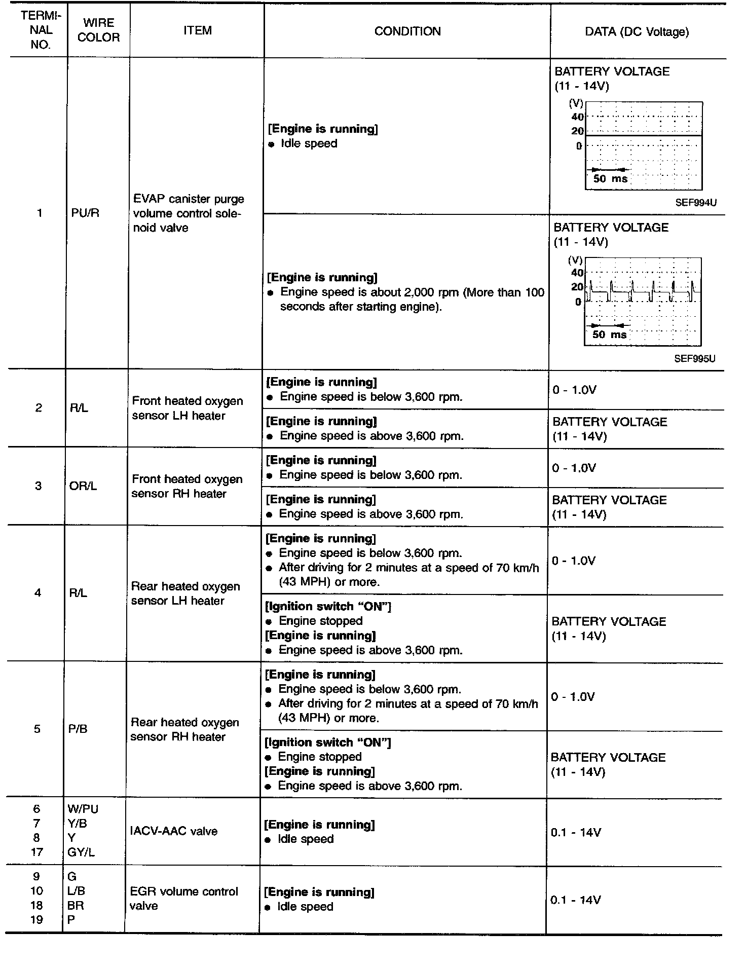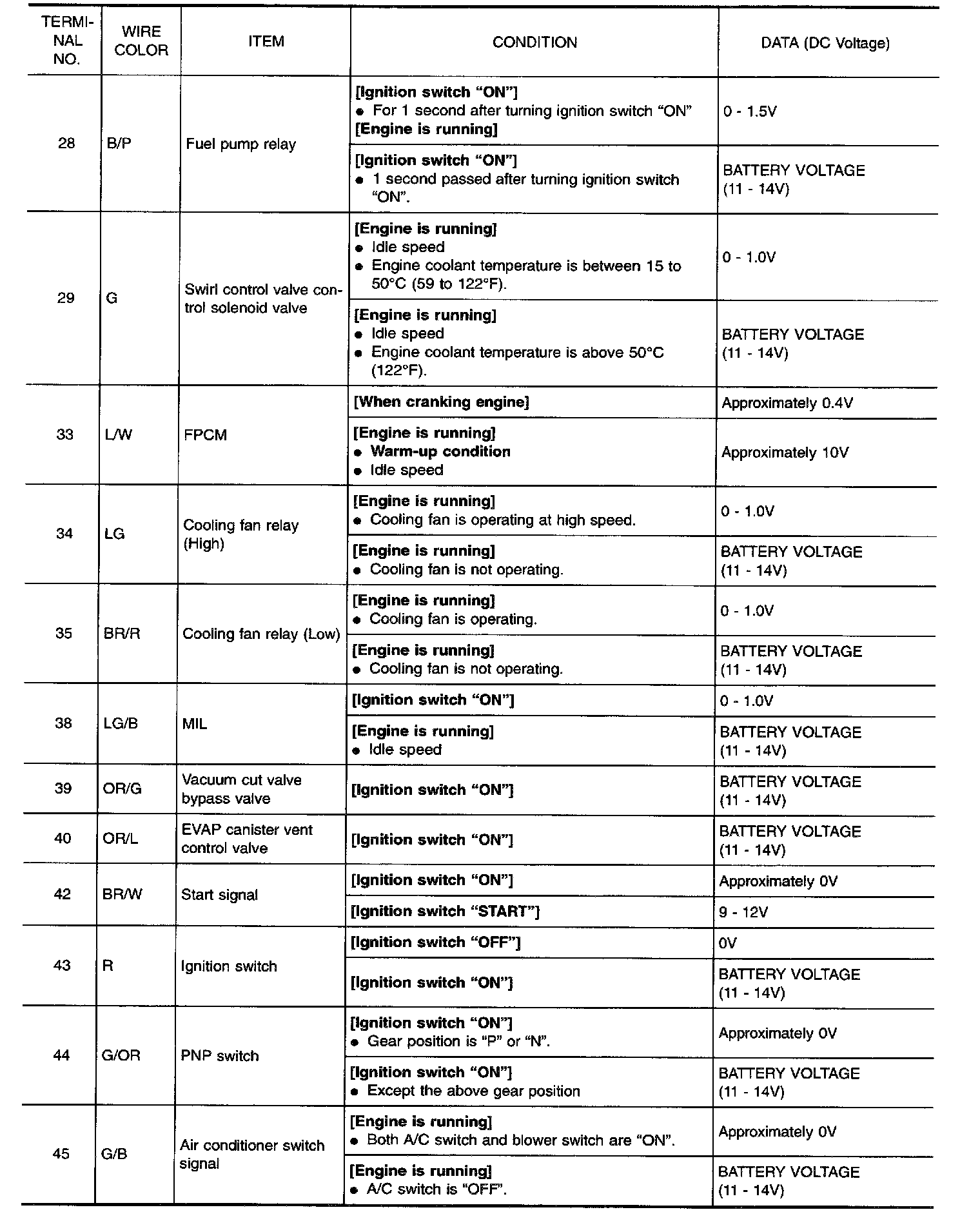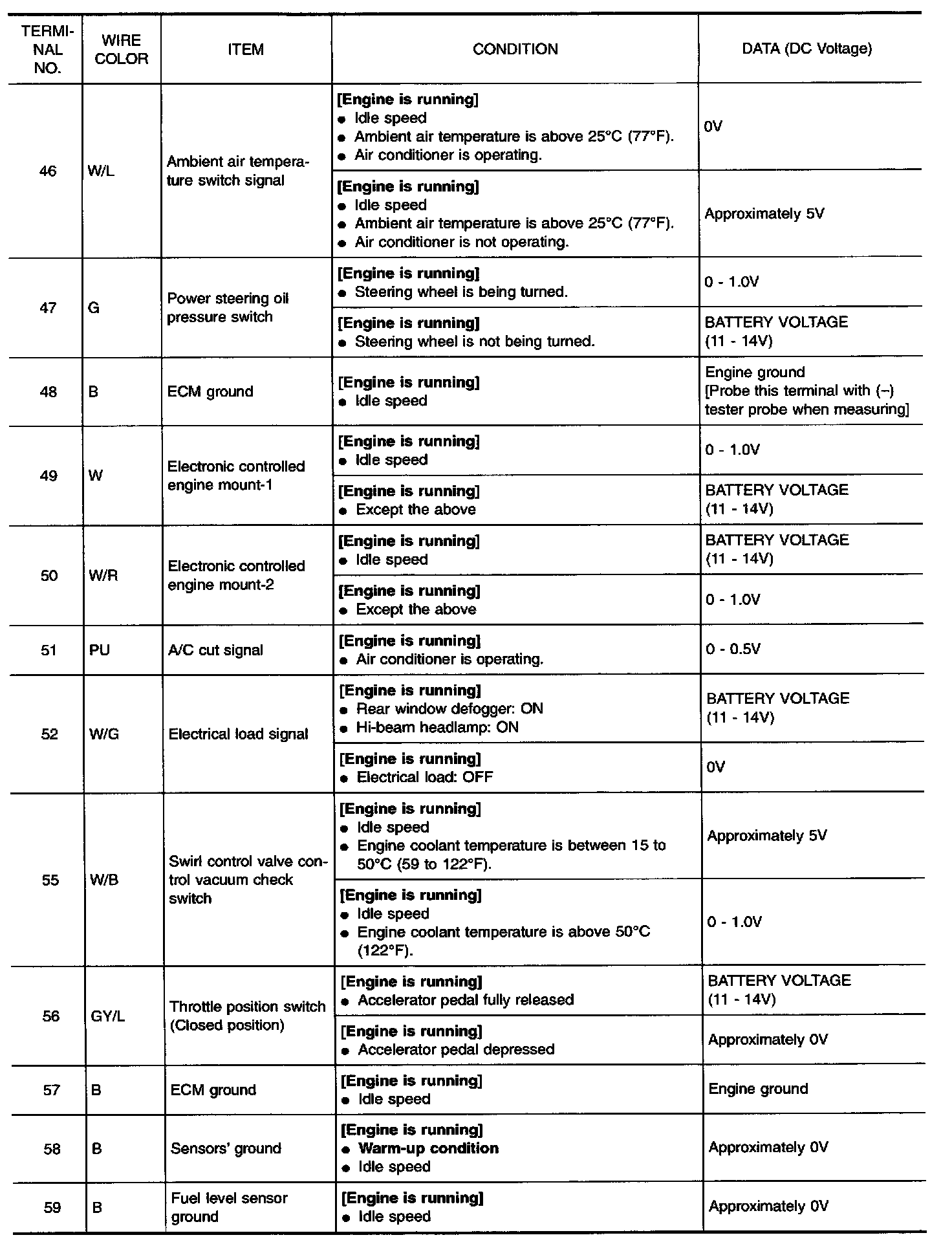 Specification data are reference values and are measured between each terminal and 48 (ECM ground).