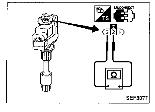 2. Check ignition coil with power transistor for resistance between terminals (3) and (2).