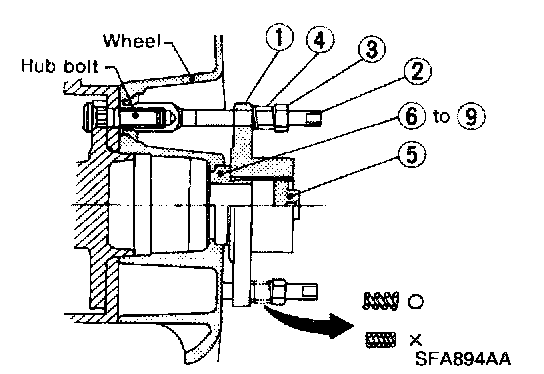 a. Select adapter which corresponds with wheel or hub shape from four types (6) to (9).