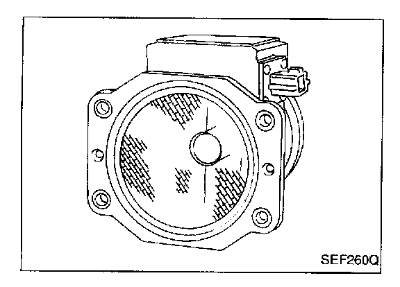 The mass air flow sensor is placed in the stream of intake air. It measures the intake flow rate by measuring a part of the entire intake flow. It consists of a hot film that is supplied with electric current from the ECM. The temperature of the hot film is controlled by the ECM a certain amount. The heat generated by the hot film is reduced as the intake air flows around it. The more air, the greater the heat loss.