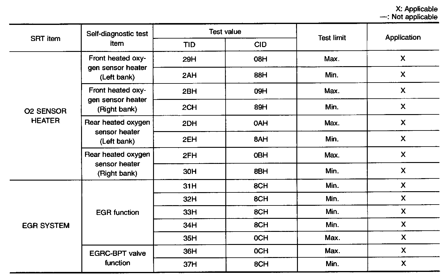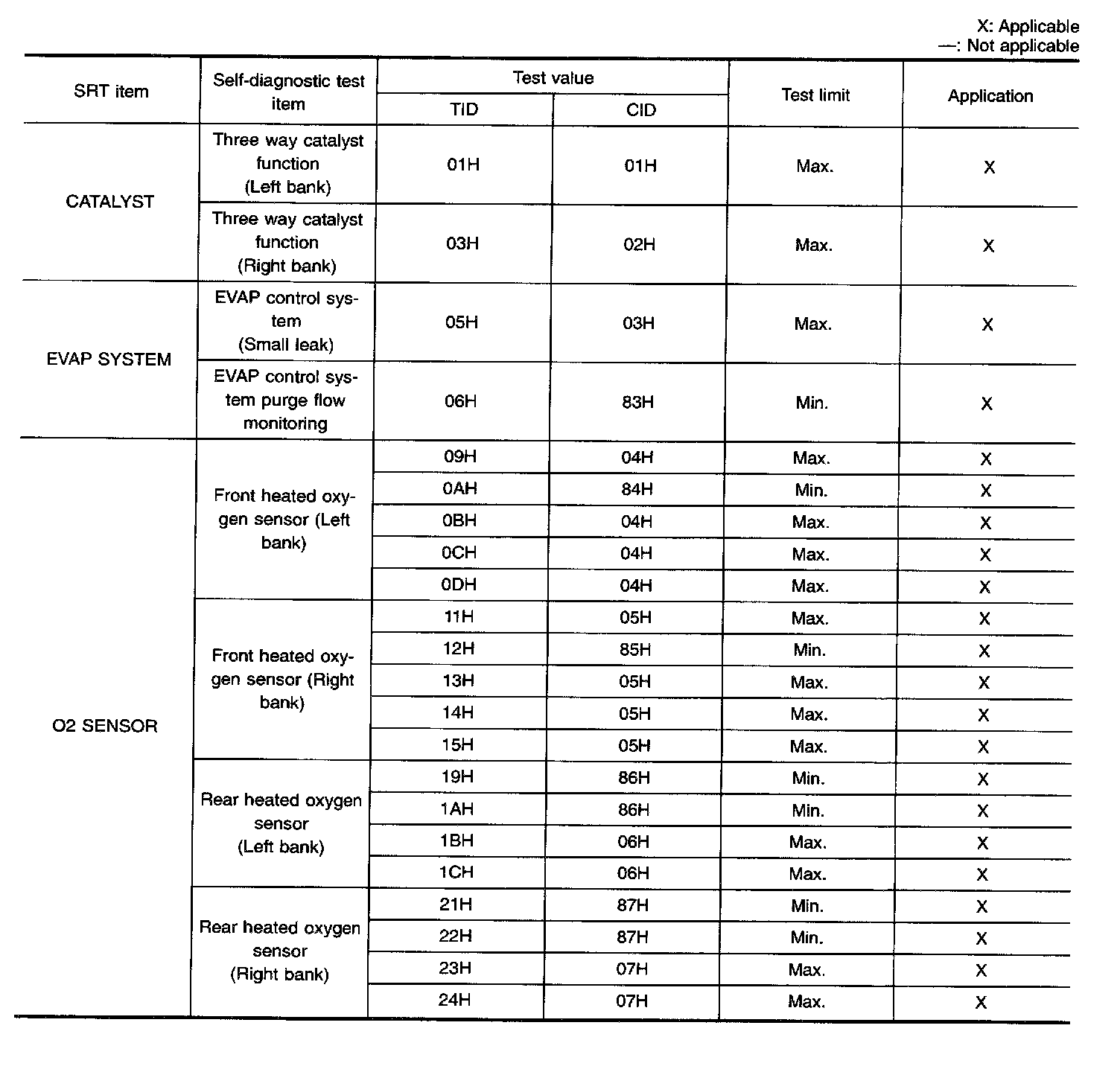 The test value is a parameter used to determine whether a system/circuit diagnostic test is "OK" or "NG" while being monitored by ECM during self-diagnosis. The test limit is a reference value which is specified as the maximum or minimum value and is compared with the test value being monitored.