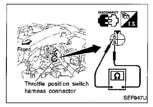 Resistance measurement must be made with closed throttle position switch installed in vehicle.