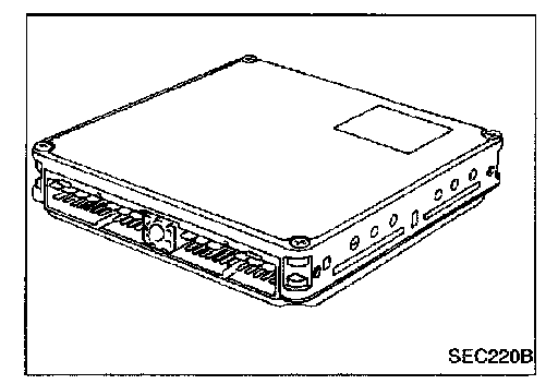 The ECM consists of a microcomputer, diagnostic test mode selector, and connectors for signal input and output and for power supply. The unit controls the engine.