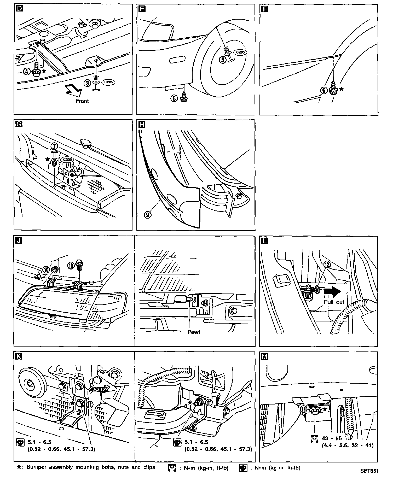 11. Remove bolt and nuts securing bumper reinforcement assembly. K