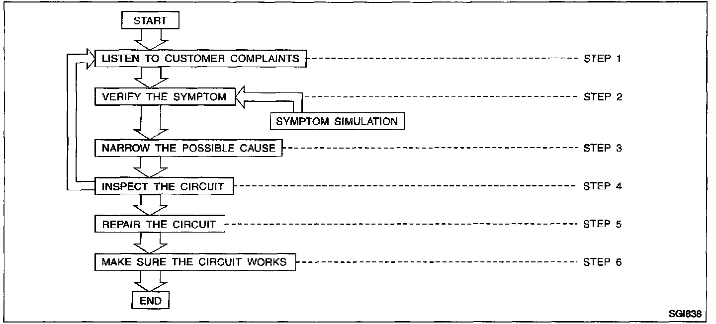 Before you begin to diagnose and test the system, you should rough sketch a schematic of the system. This will help you to logically walk through the diagnosis process. Drawing the sketch will also reinforce your working knowledge of the system.