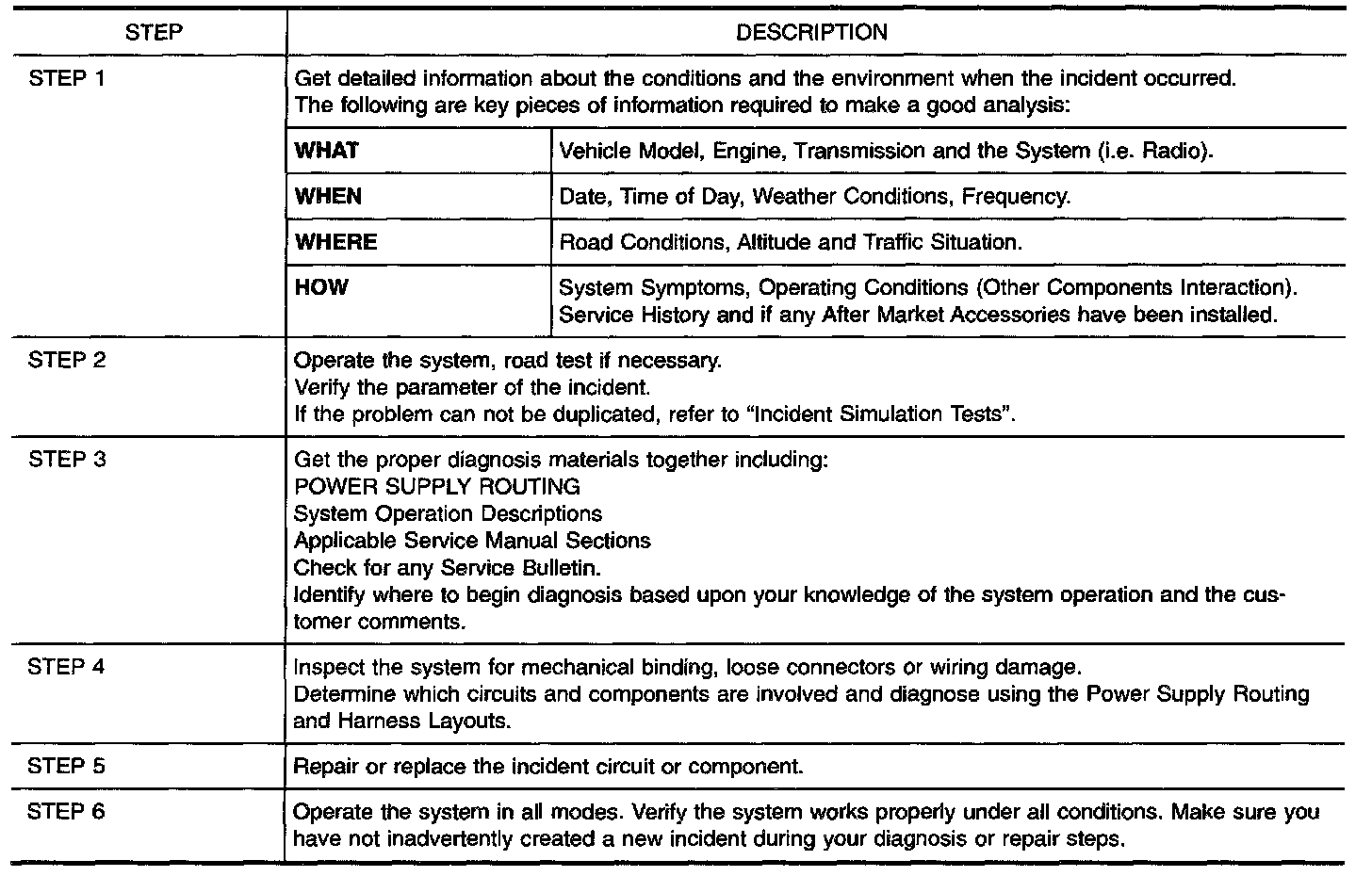Sometimes the symptom is not present when the vehicle is brought in for service. If possible, re-create the conditions present at the time of the incident. Doing so may help avoid a No Trouble Found Diagnosis. The following section illustrates ways to simulate the conditions/environment under which the owner experiences an electrical incident.