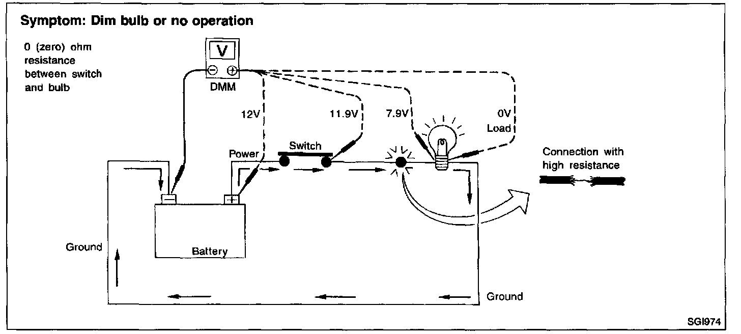 Electronically controlled circuits are very sensitive to proper grounding. A loose or corroded ground can drastically affect an electronically controlled circuit. A poor or corroded ground can easily affect the circuit. Even when the ground connection looks clean, there can be a thin film of rust on the surface.