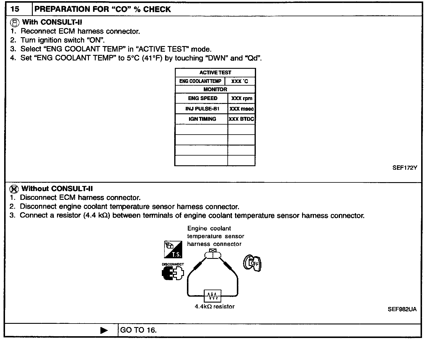 - When measuring "CO" percentage, insert probe more than 40 cm (15.7 in) into tail pipe.