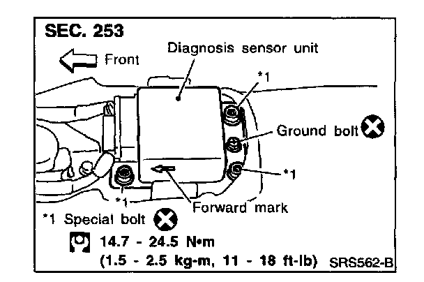 - After replacement of diagnosis sensor unit, perform self-diagnosis for SRS. Refer to "DIAGNOSTIC PROCEDURE 1" for details.