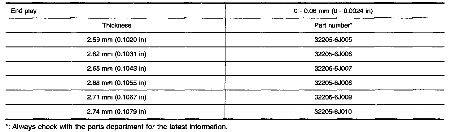 MAINSHAFT REAR BEARING ADJUSTING SHIM