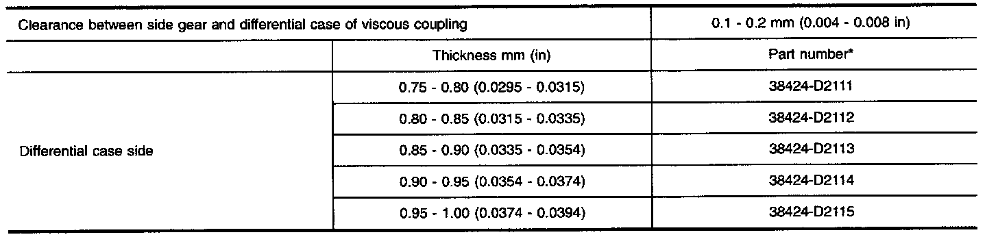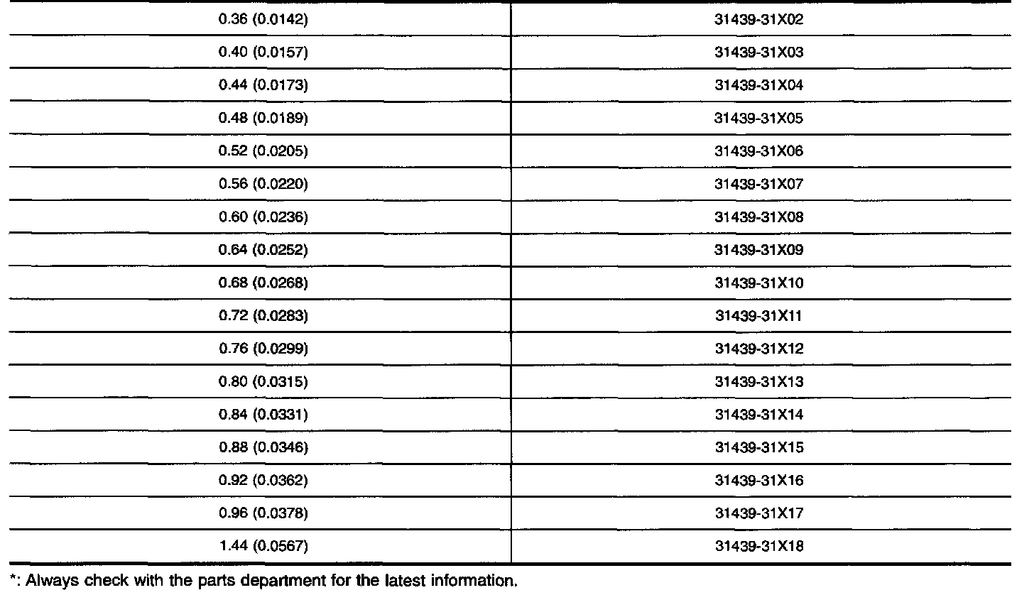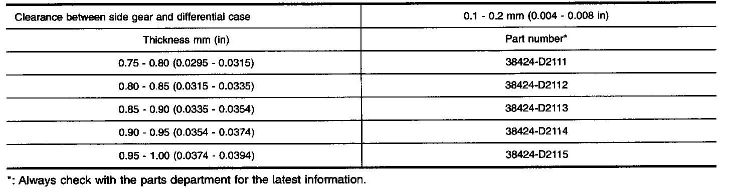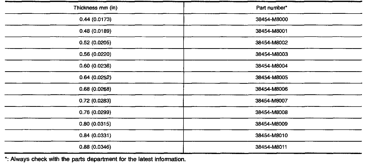 Available Shims Differential Side Bearing Preload and Adjusting Shim