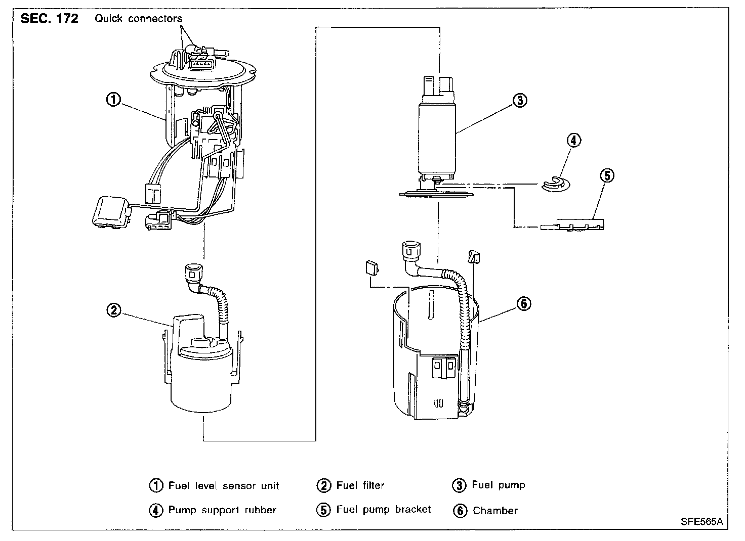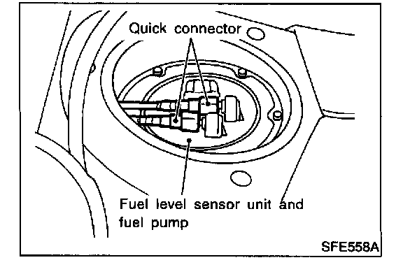 - For removal of quick connectors, refer to step 5. of "Fuel Tank Removal".