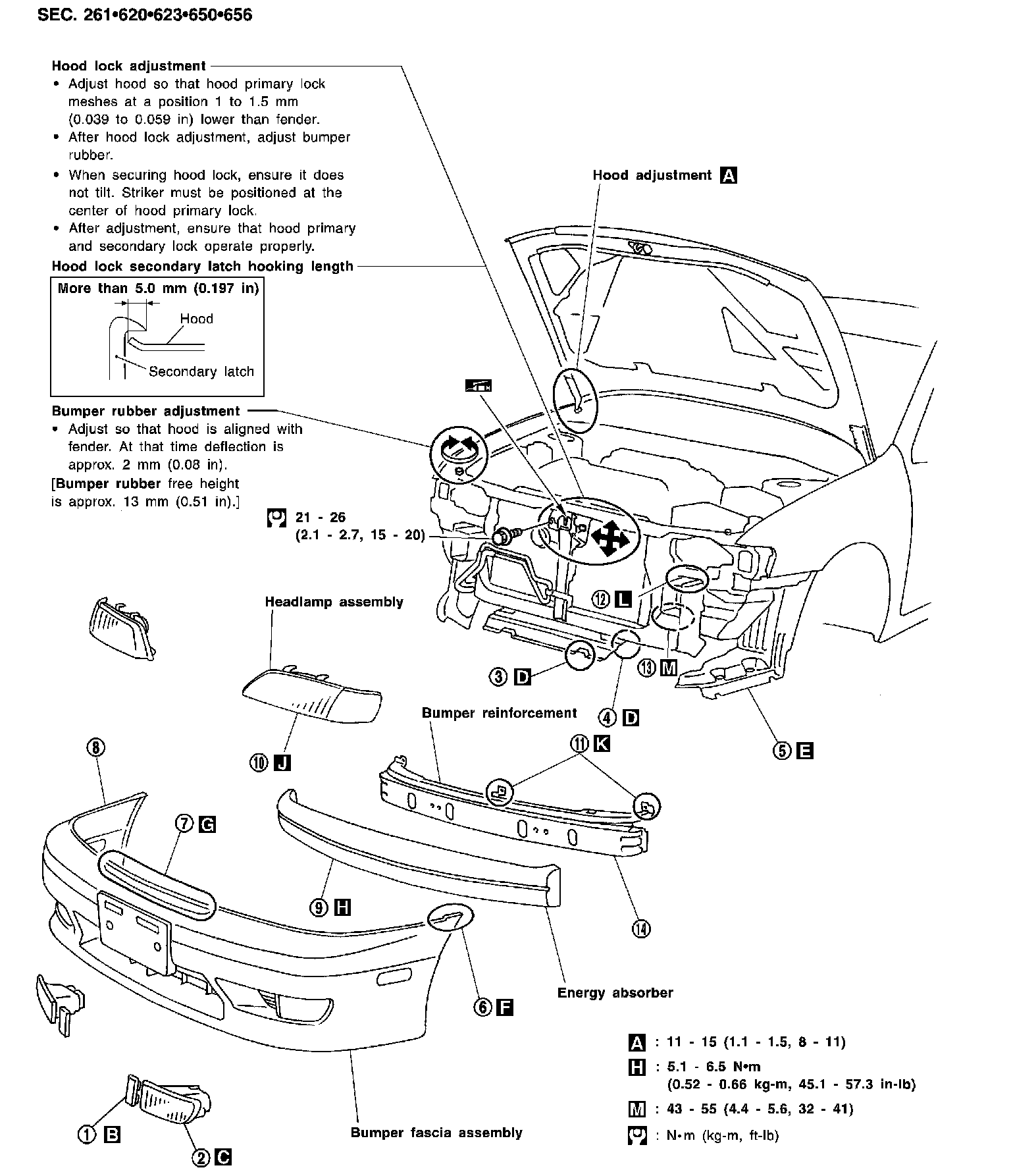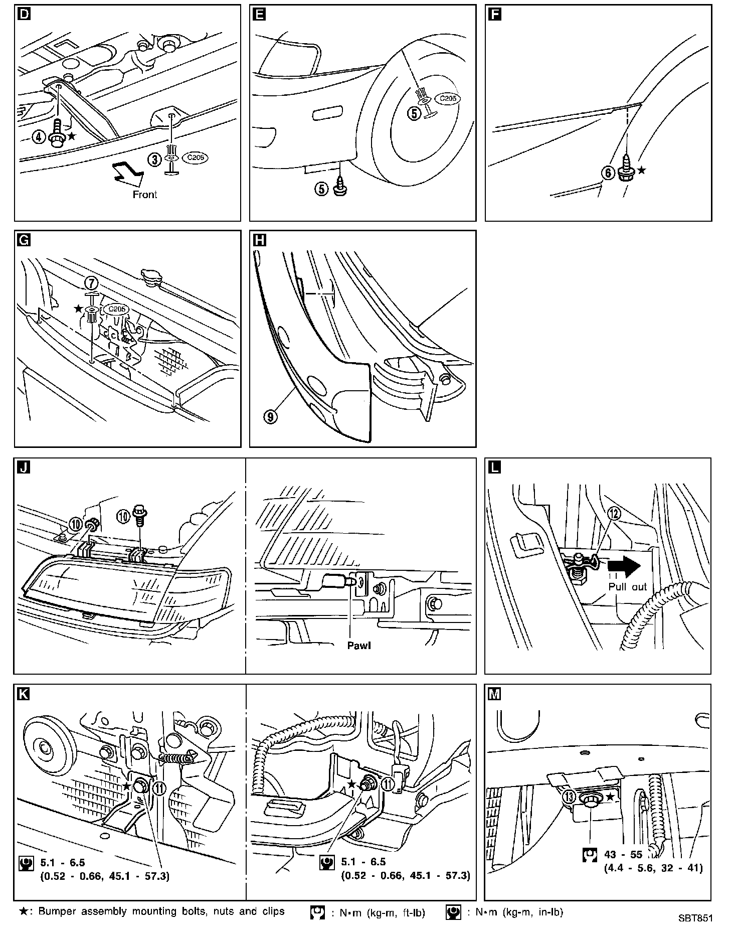 11. Remove bolt and nuts securing bumper reinforcement assembly. K