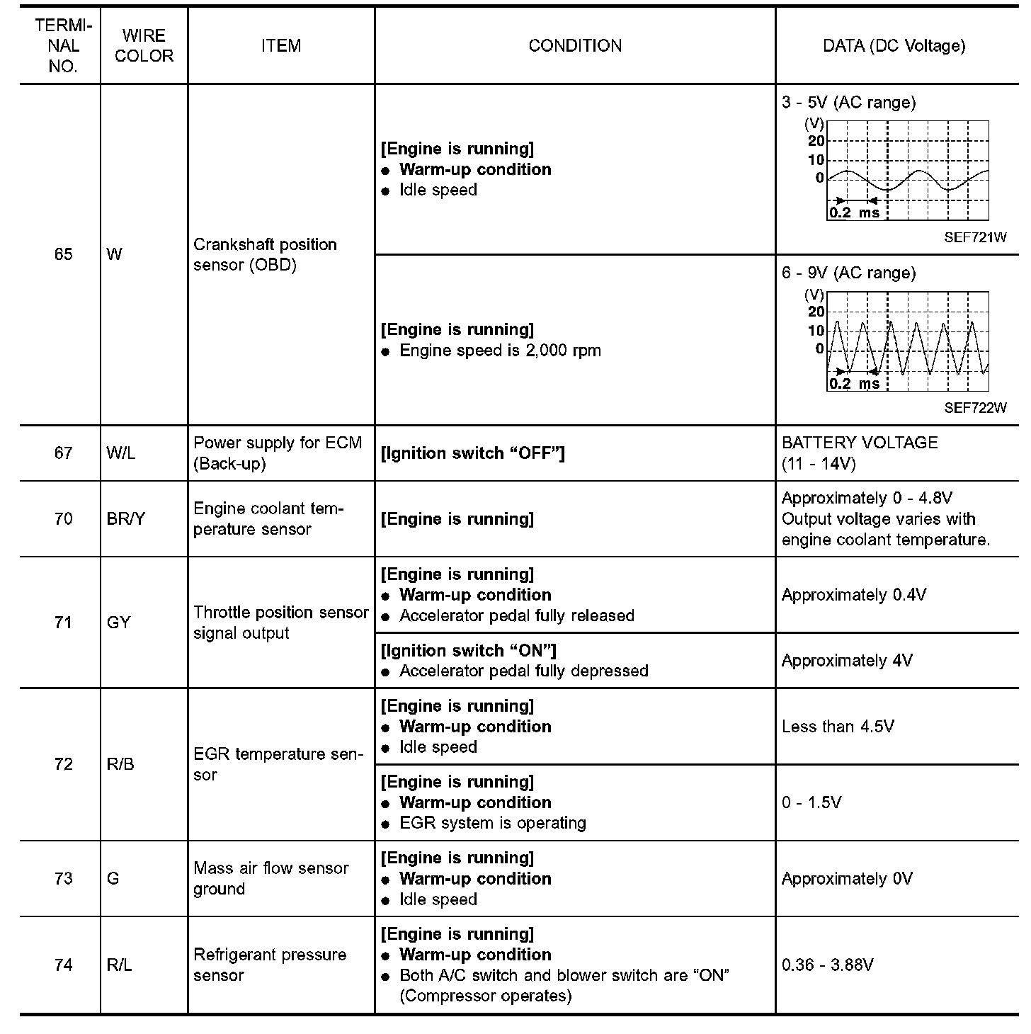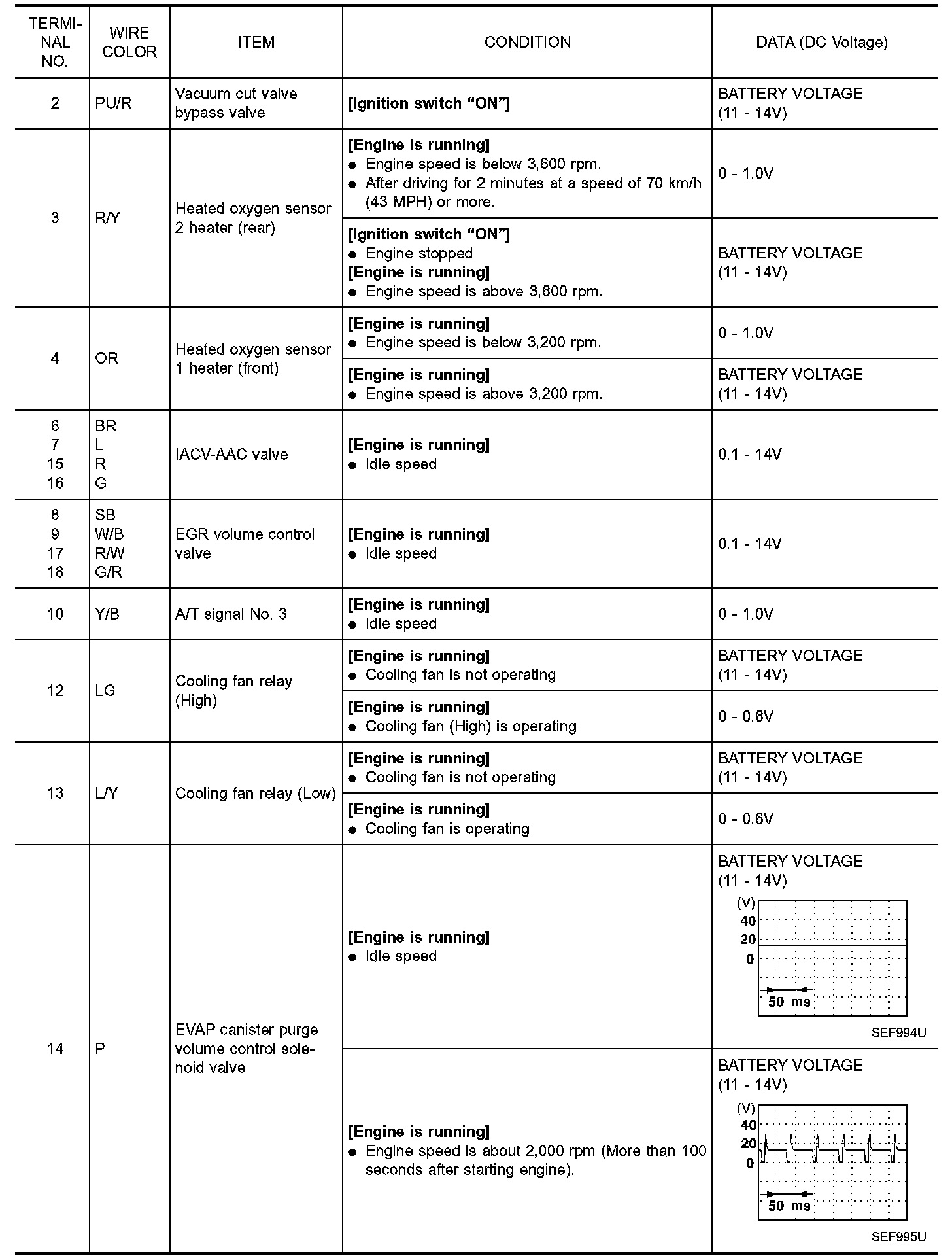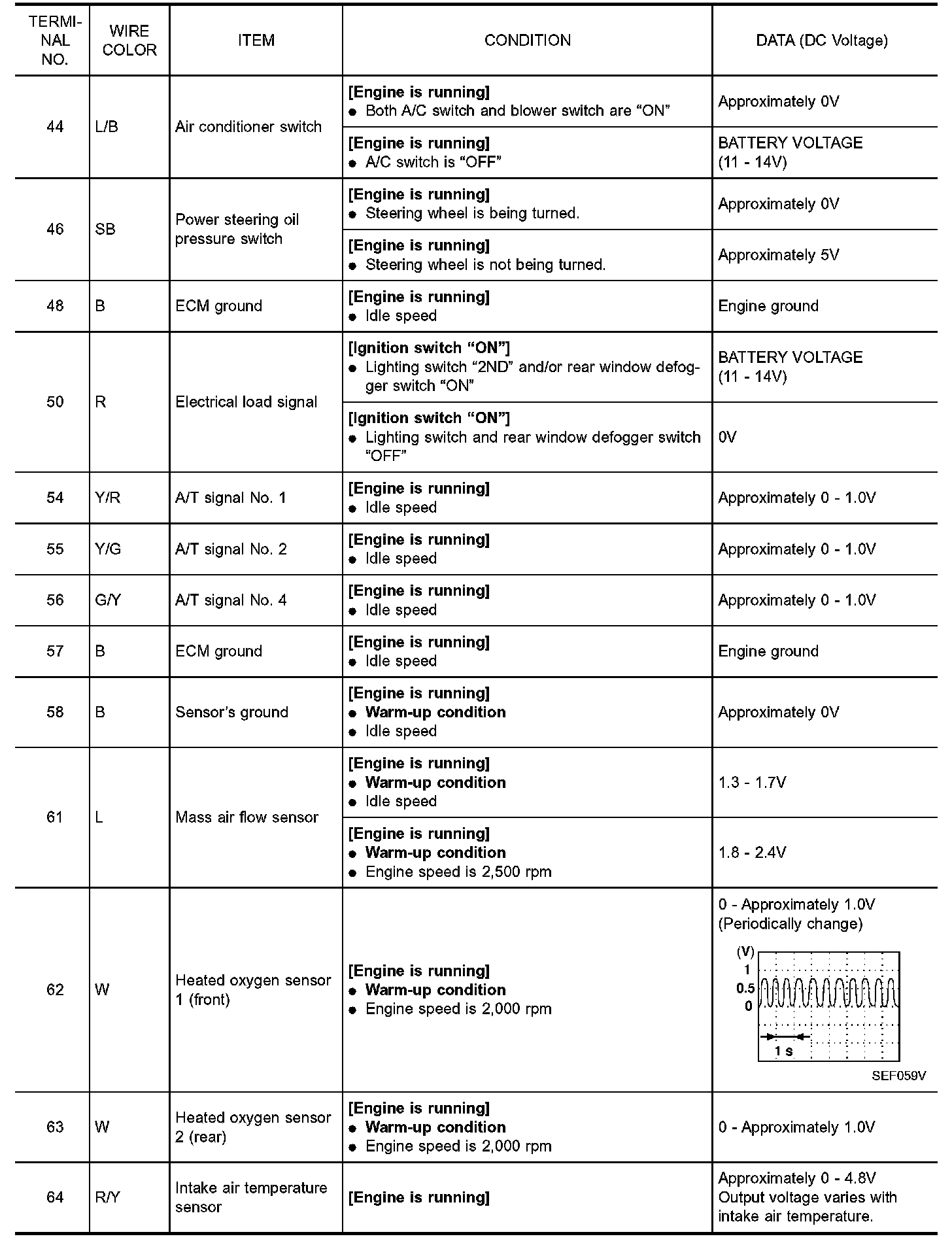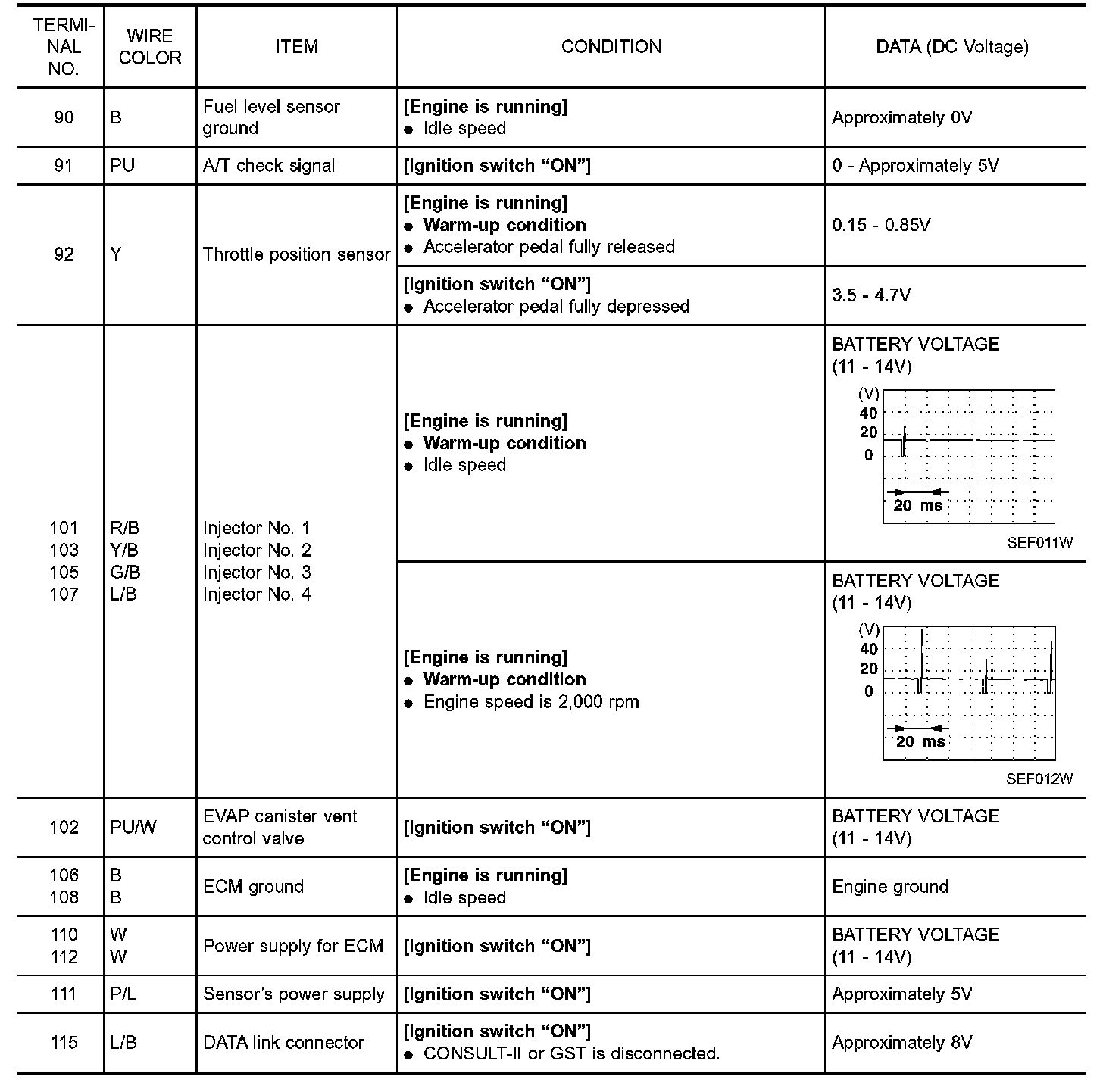 CAUTION: Do not use ECM ground terminals when measuring input/ output voltage. Doing so may result in damage to the ECM's transistor. Use a ground other than ECM terminals, such as the ground.