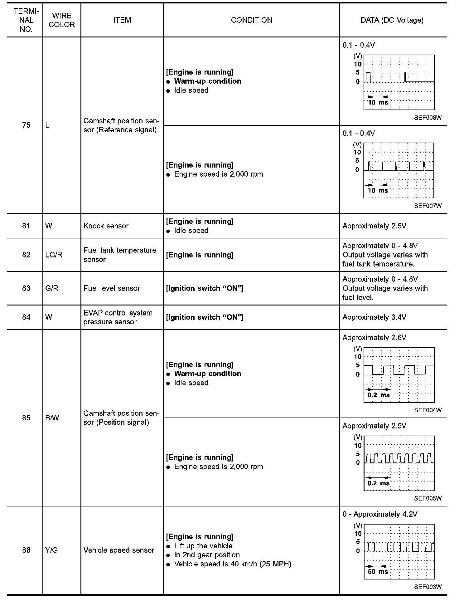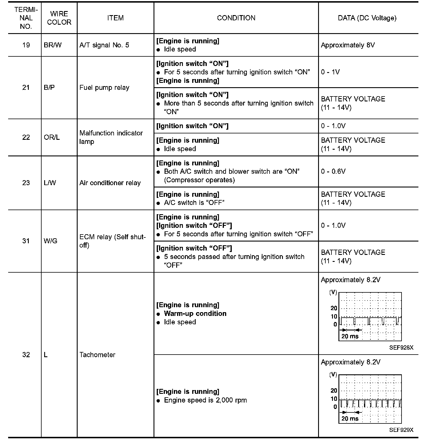 Specification data are reference values and are measured between each terminal and ground.
