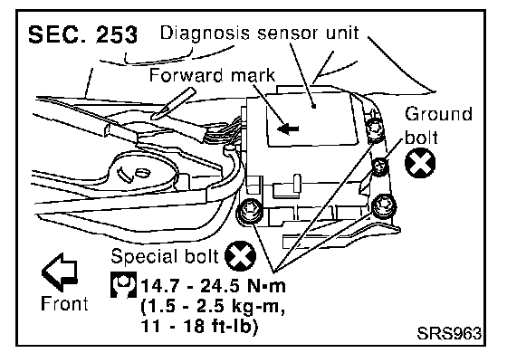 4. Remove bolt and also remove special bolts using the TAMPER RESISTANT TORX (Size T50), from diagnosis sensor unit. Then remove the diagnosis sensor unit.