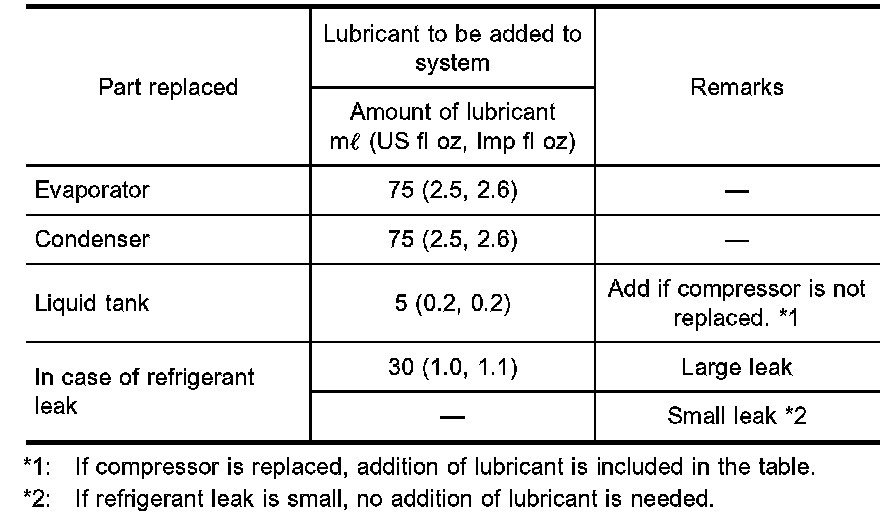 Lubricant Adjusting Procedure For Components Replacement Except Compressor: