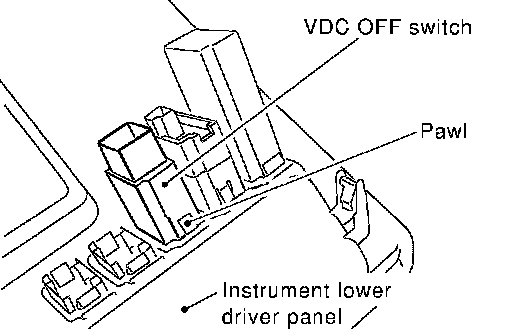2. Push the VDC OFF switch's pawls and remove the switch from the instrument lower driver panel.