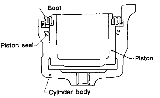 2. With piston boot fitted to piston, insert piston boot into groove on cylinder body and install piston.