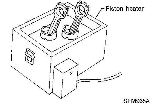 When disassembling piston and connecting rod, remove snap ring first, then heat piston to 60 to 70°C (140 to 158°F).