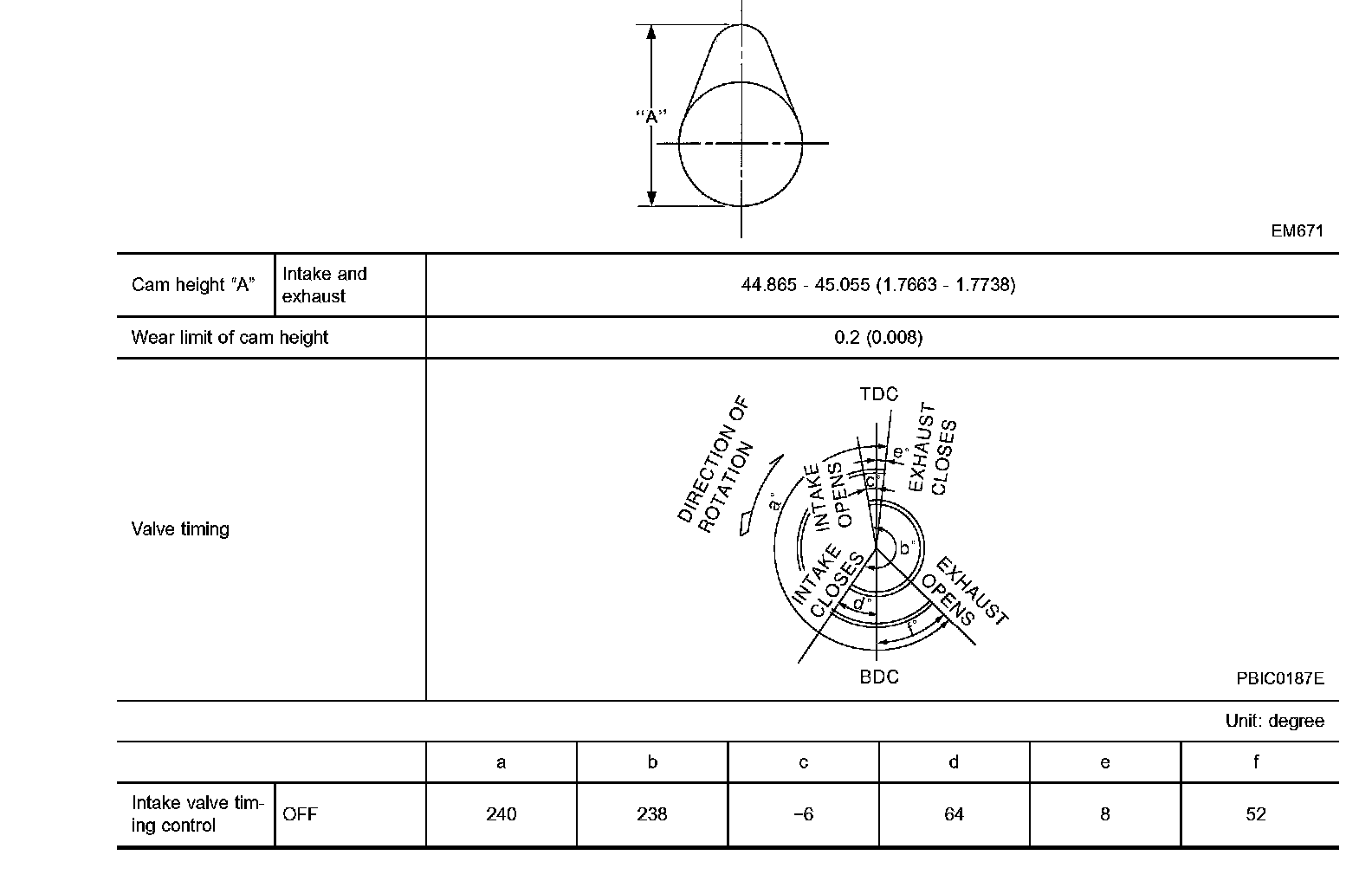 Wear limit of cam height 0.2 (0.008)