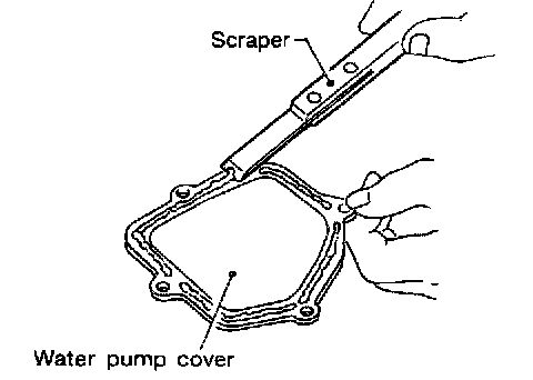 41. Use a scraper to remove all traces of liquid gasket from water pump cover and intake valve timing control solenoid valve covers.