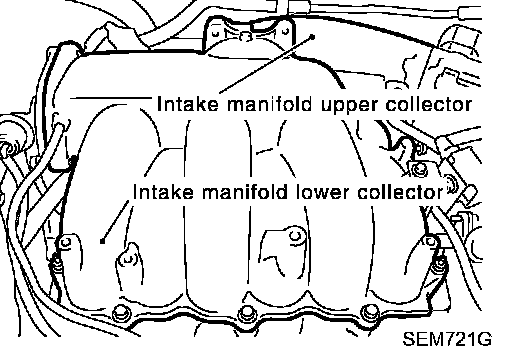 7. Remove intake manifold upper and lower collectors loosening bolts and nuts in reverse order of tightening.