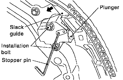 34. Remove timing chain tensioner and slack side chain guide.