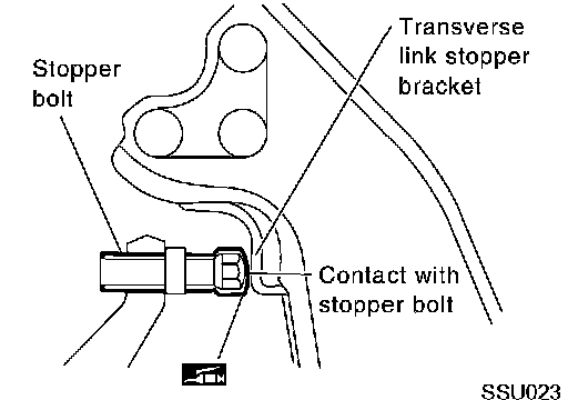 3. Check stopper bolt head to see whether it contacts stopper bracket at specified outside wheel angle. If not, adjust stopper bolt to contact stopper bracket at the correct angle.