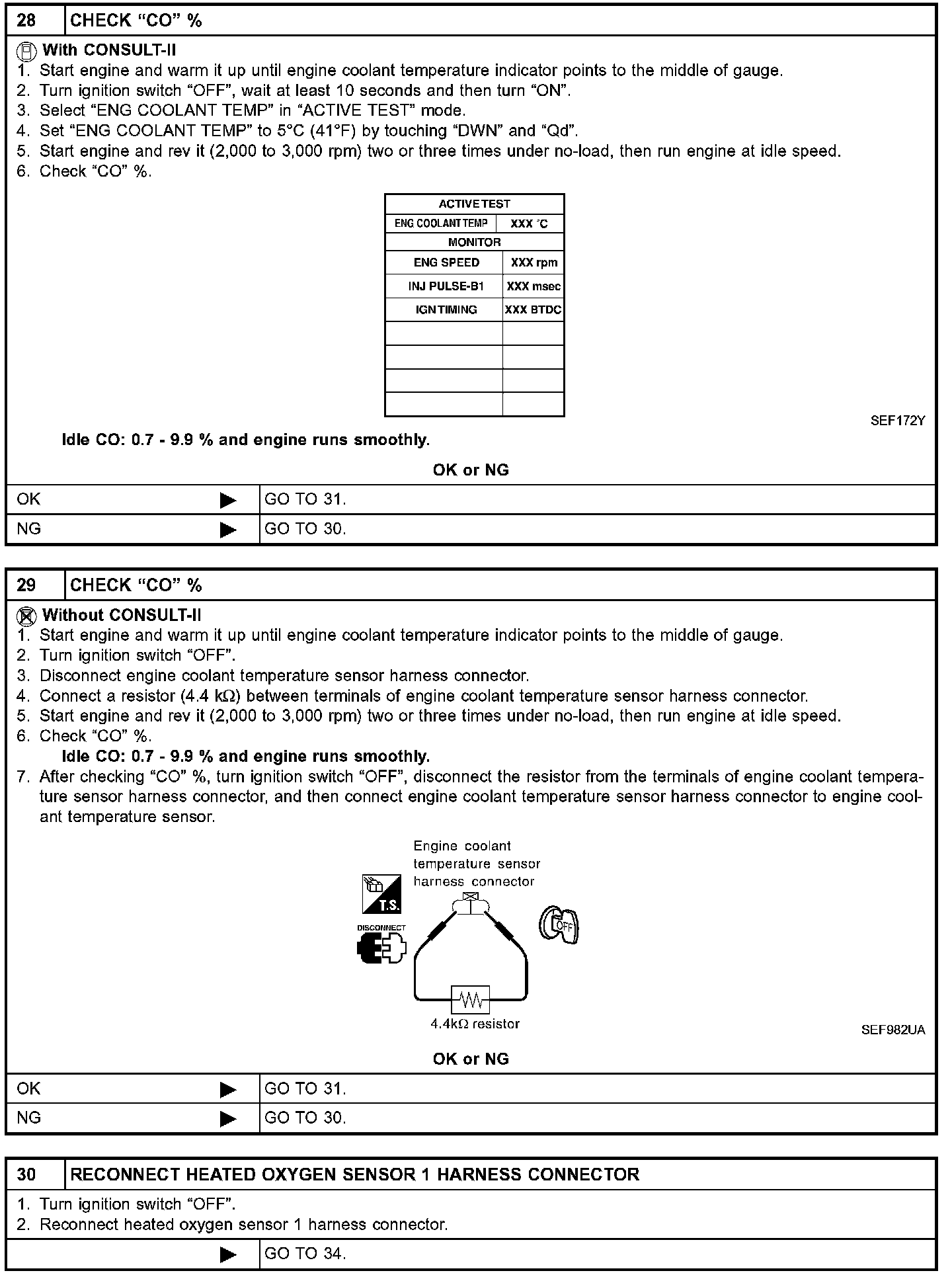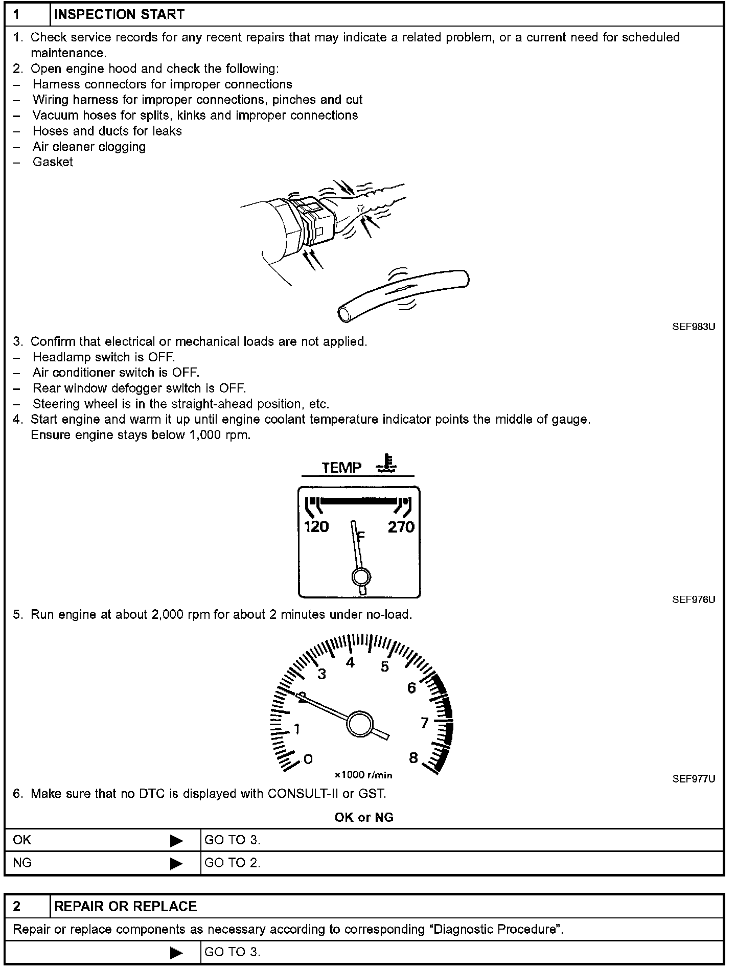 2. On air conditioner equipped models, checks should be carried out while the air conditioner is "OFF".