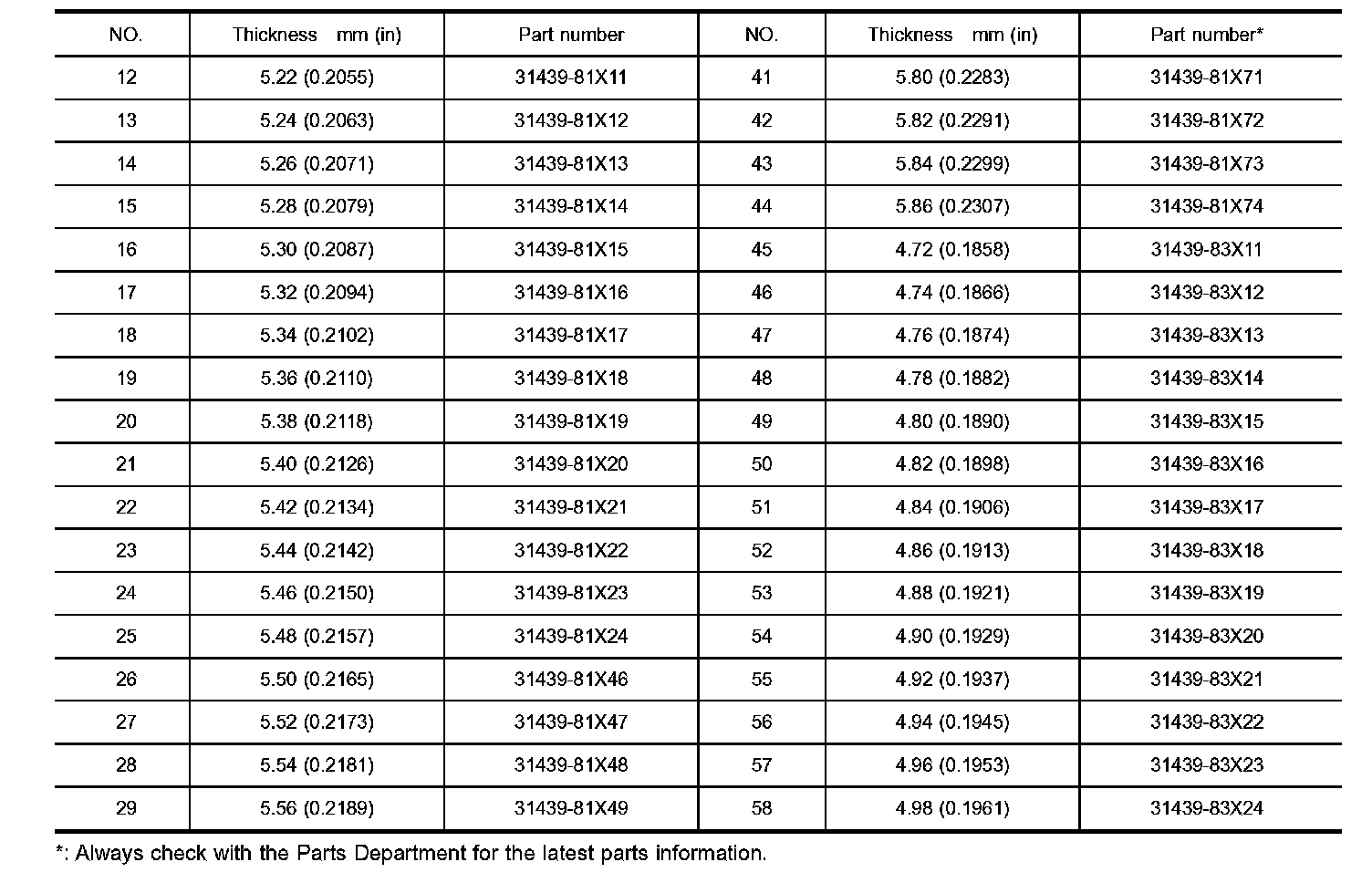 DIFFERENTIAL SIDE BEARING PRELOAD ADJUSTING SHIMS
