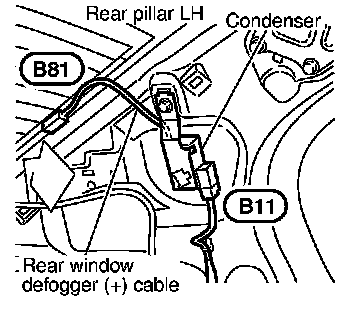 Rear Pillar LH, Condenser, Rear Window Defogger (+) Cable:
