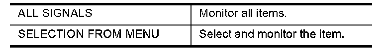 5. If "SELECTION FROM MENU" is selected, touch the desired monitor item. If "ALL SIGNALS" is selected, all the items are monitored.