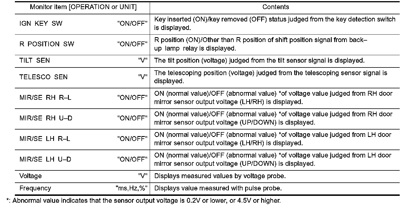 5. If "SELECTION FROM MENU" is selected, touch the desired monitor item. If "MAIN SIGNALS" is selected, main items are monitored.