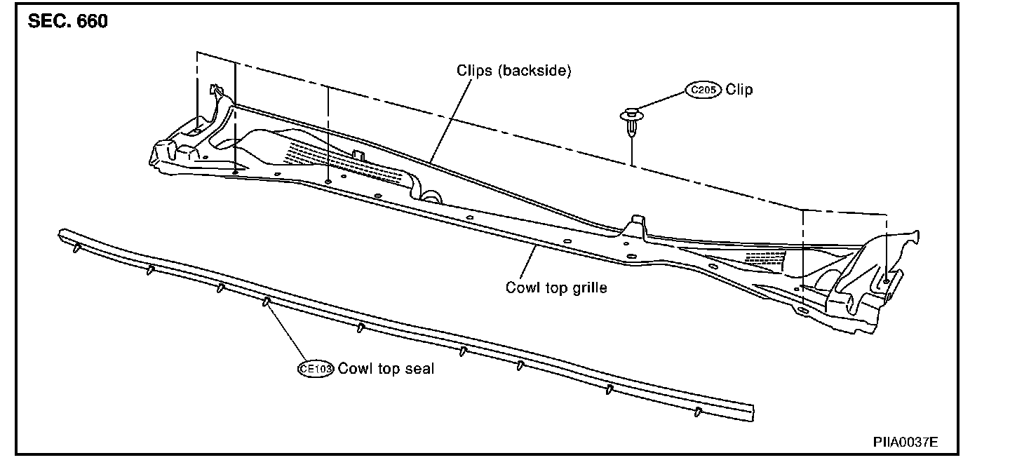 3. Release clips of both cowl top seal rubber and cowl top cover, and remove cowl top cover.