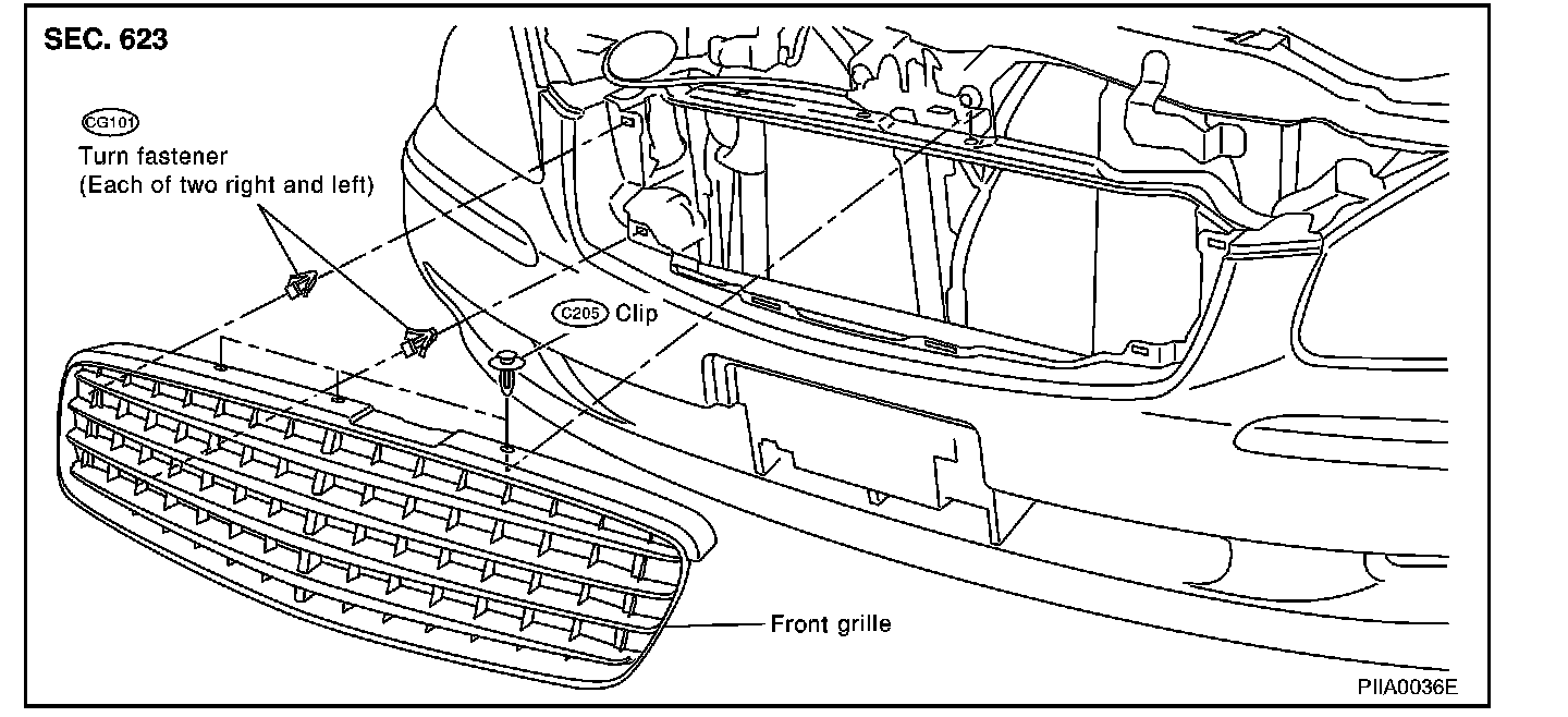 2. Remove clips on upper side of grille.