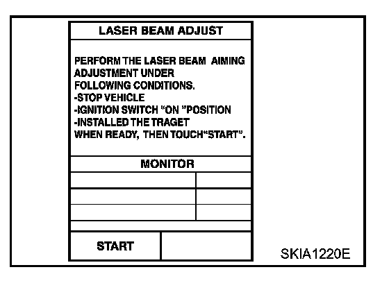 CAUTION: Complete all the procedures once "LASER BEAM ADJUST" mode is entered in CONSULT-II. When the procedure is discontinued, the ICC system is inoperable.
