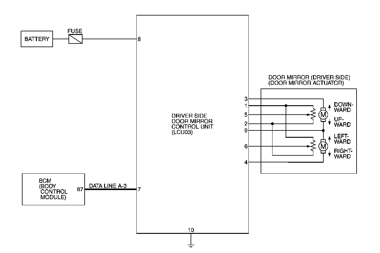 Driver's Side Door Mirror Control Unit (With Door Mirror Memory System) Schematic LCU03: