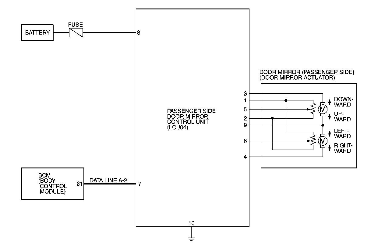 Driver's Side Door Mirror Control Unit (With Door Mirror Memory System) Schematic LCU04: