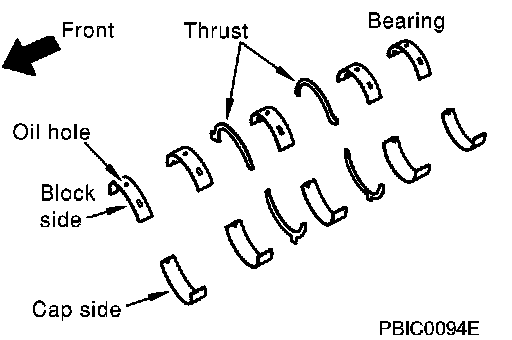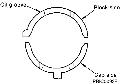- Install the one with oil holes onto the cylinder block and the one without oil holes onto the main bearing cap.