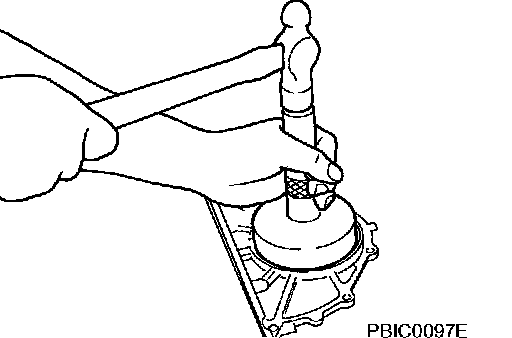 Using a drift approximately 35 mm (1.38 inch) in outer diameter, drive the pilot converter until its front end contacts the crankshaft.