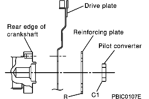 Install drive plate, reinforcement plate and pilot converter (if not installed in step 4) as shown in figure.