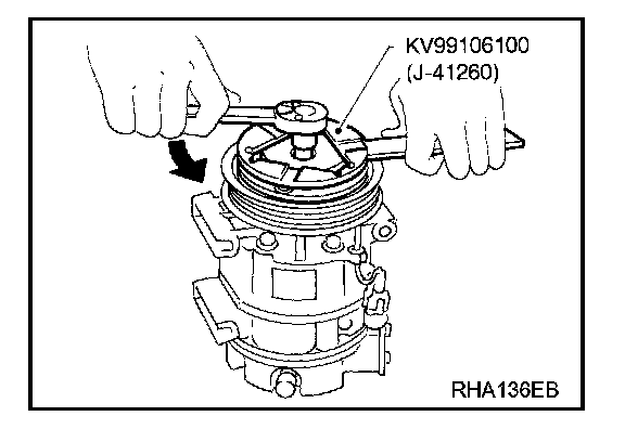 When replacing compressor clutch assembly, always carry out the break-in operation.