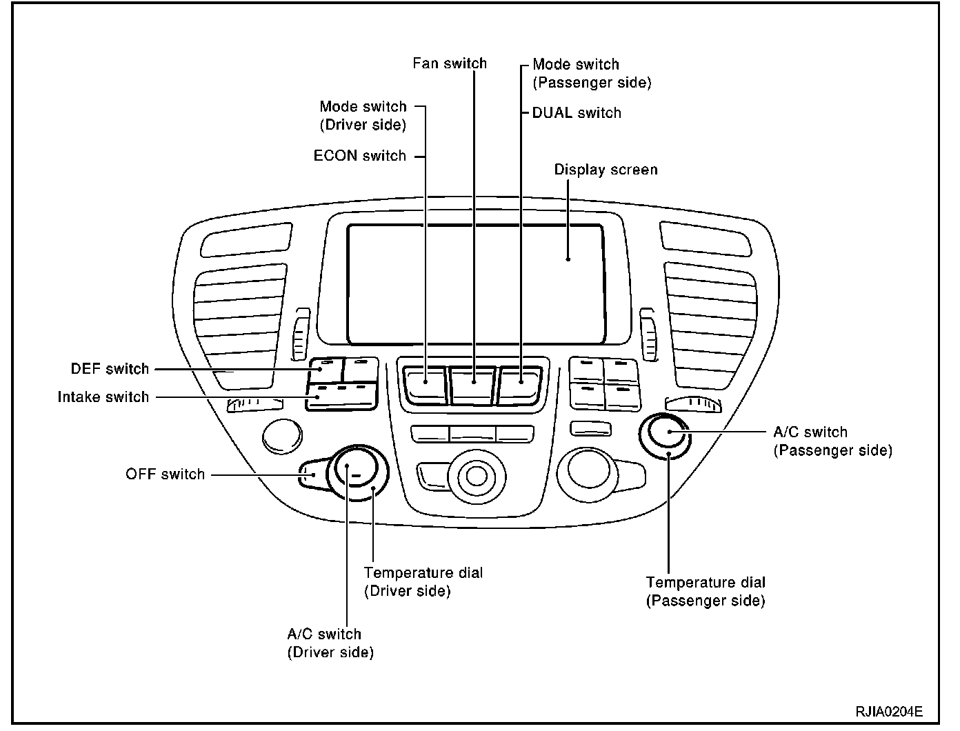 When the DUAL switch indicator is illuminated and the DUAL switch is pressed, the driver-side outlet and setting temperature is applied to both sides.