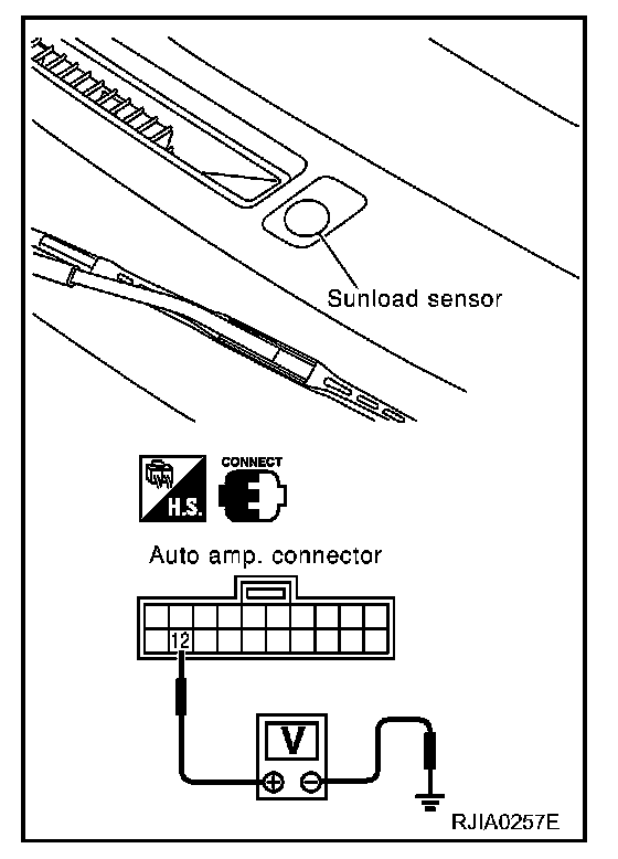 When checking sunload sensor, select a place where sun shines directly on it.